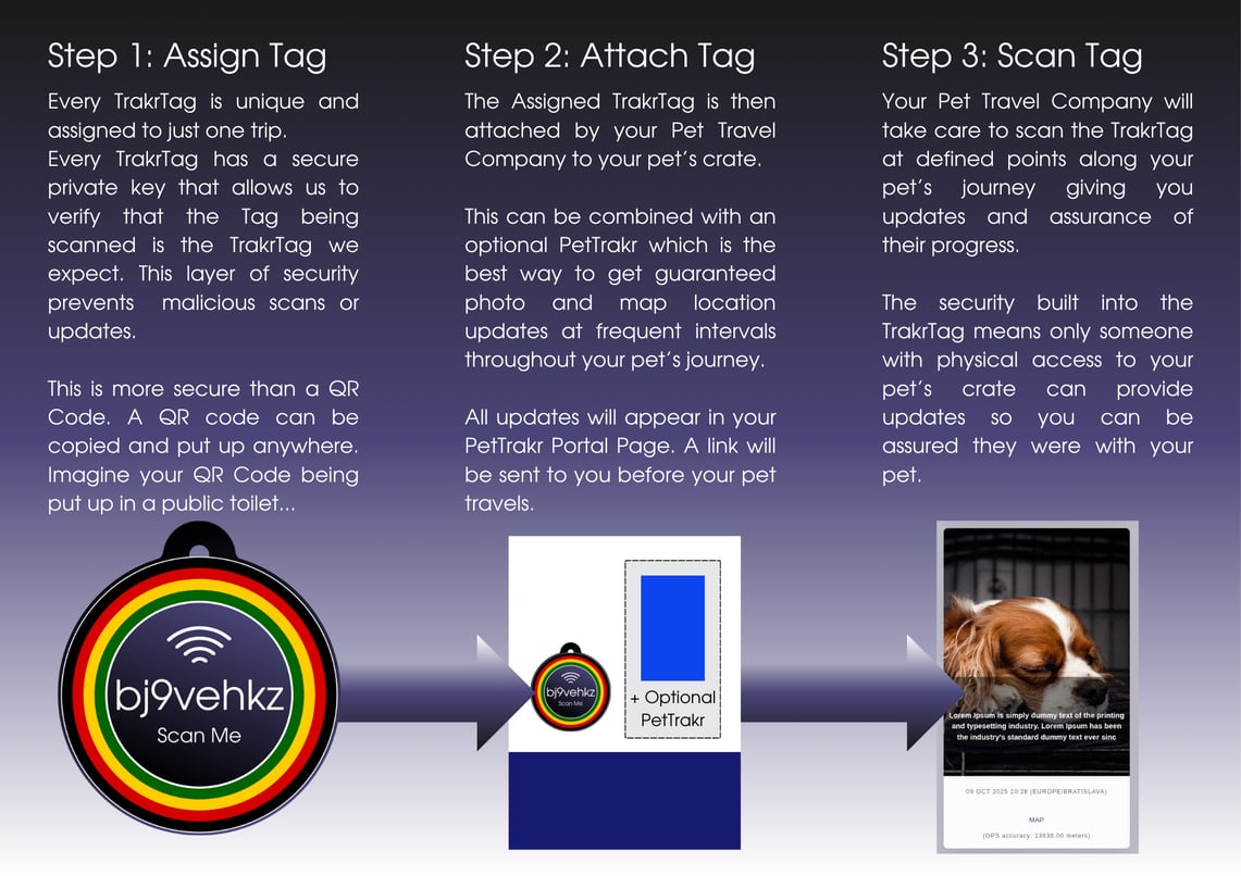 Introducing TrakrTag, the simplest way to get updates during your pet's journey. TrakrTags have no battery and can be used on any airline. And as a bonus, for every date submitted we will donate AUD$1 to GARC.